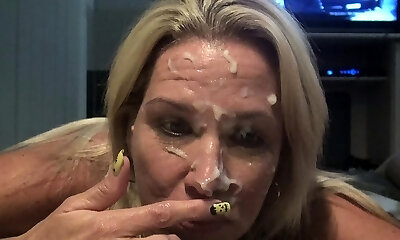 erfahrene ash-blonde dame gibt einen beeindruckenden blow-job zu ihrem teenager paramour und bekommt eine gesichtsbehandlung