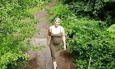 riesiger spritzer einer vollbusigen blondine im wald auf einem rohen großen schwanz
