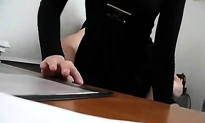 chef wichst heimlich zu seiner sekretärin und spritzt ihr im strumpf auf die beine