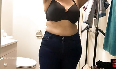 dralle braunhaarige zieht sich vor der cam