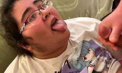 Hairy Fatty Inhales Cocks And Gets Sprayed With Cum