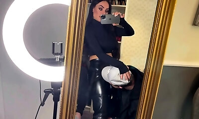 Cruel Dominatrix In Leather Gloves Face Spanking and Homsmother Torture Femdom