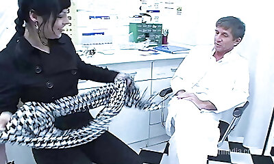 Horny Russian brunette patient is fucked by a kind physician with a big sausage