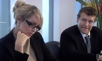 Marvelous office whore in glasses Ivy Lebelle takes ginormous cock into her humungous ass