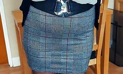 Your 53 year old mature step-aunt in her favourite brief tight skirt and open fuckbox pantyhose.