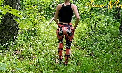 Beautiful fitness girl seduced into facehole watering anal sex outdoors