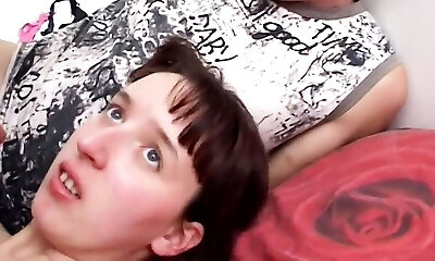 Nerdy student enjoyed rough sex and hot jism on her puny tits.