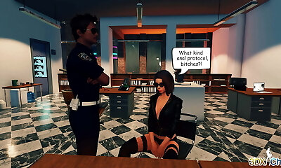 Female Police Officer with Big Bumpers Arrests a Criminal and Gets Gang-fucked by Her Bosses
