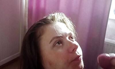 Huge-titted stepsister blows in POV and does not stop till cumshot in jaws