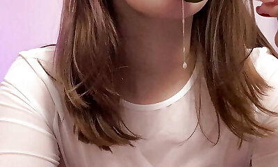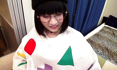 Teen wear glass have fun with vibrator