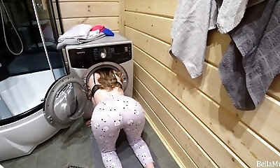 Bella gets stuck in the washing machine and opportunistically doggystyled.