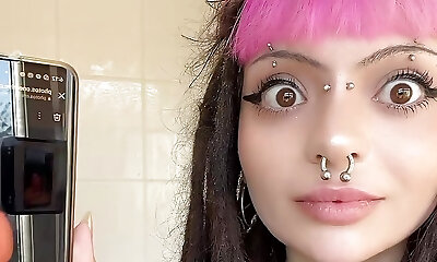 Tattooed Blackwidow gets her pierced snatch drilled