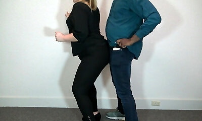 穿着巨大的高高跟拖鞋精力充沛的助理伊娃暴露了她的娘们和背面