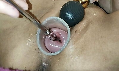 拆除和传播她的洞,直到她的粉红色皱褶与大Fucktoys,三重拳交,极端插入和直肠蔓延,rea