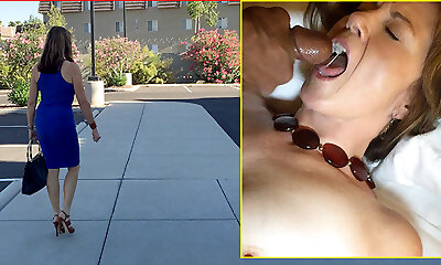成熟的金发女郎blimp fellates一个manstick在乘坐它之前