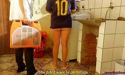 已婚的家庭主妇,技术员支付洗衣机与她的阴部