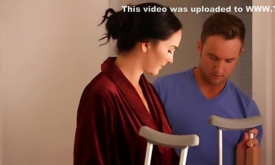 继母与超级热气腾腾的继子共享沙发。. 给她一个惊喜