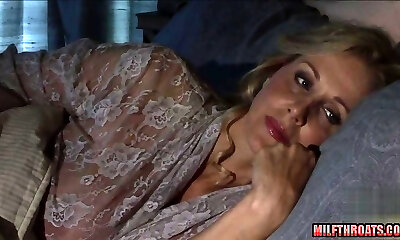 胖乎乎的山药大小的胸罩-stuffers成熟的继母fellates和粉碎她的儿子