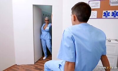 巨大的波连护士Marica Chanelles非常第一天在工作结束